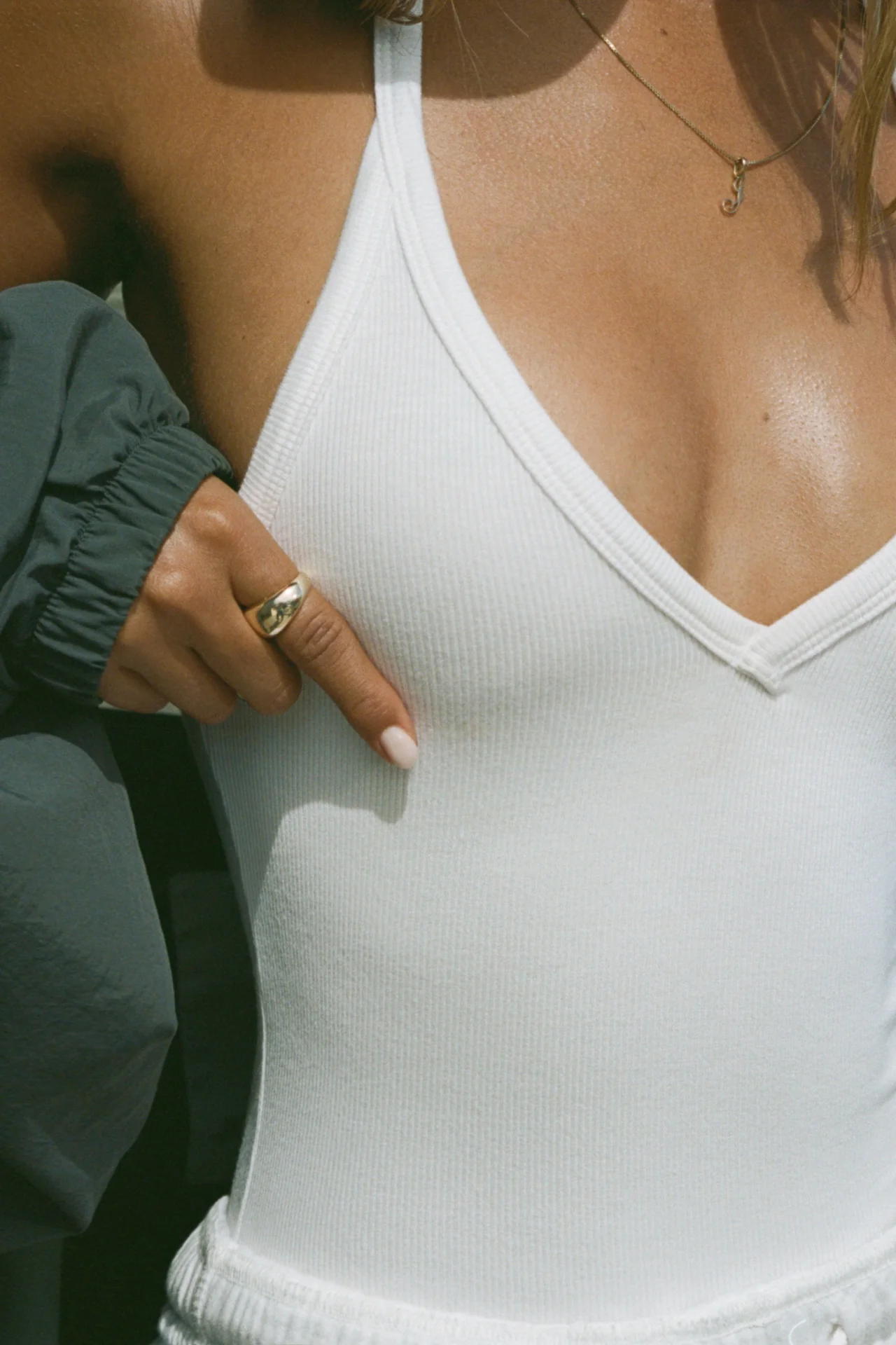 Fitted full-length tank top with a v-neckline and racerback silhouette.